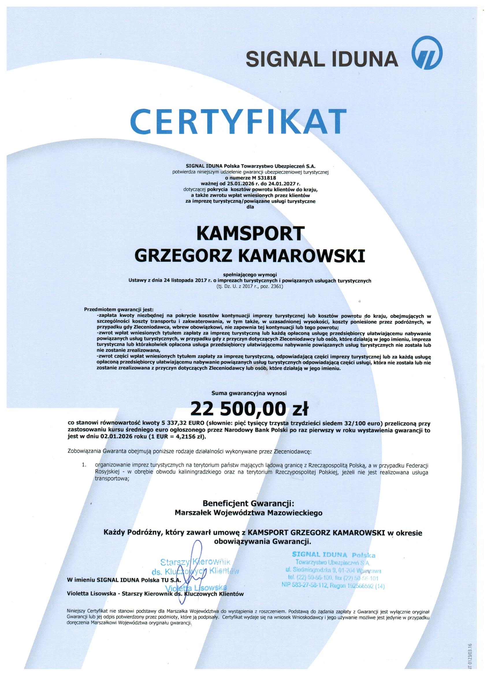 Gwarancja ubezpieczeniowa SIGNAL IDUNA nr: M 528642